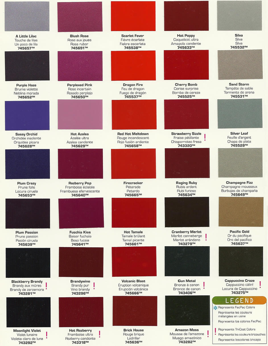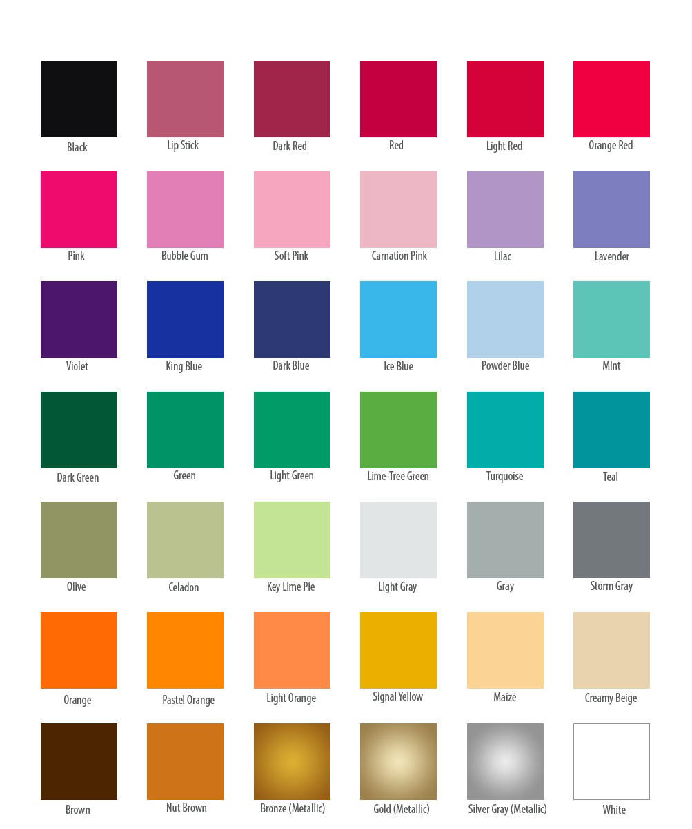 following charts are for guidelines only. Although these colors